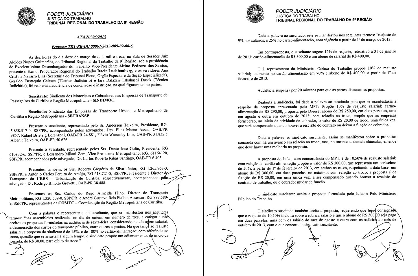 Em acordo firmado na manhã desta terça-feira (12), em audiência de conciliação, no Tribunal Regional do Trabalho – 9º Região, o SINDIMOCconcordou com a proposta de aumento salarial para os Motoristas e Cobradores de Curitiba e região metropolitana. O sindicato patronal ofereceu reajuste salarial de 10,5 %, R$ 300,00 no auxílio alimentação e R$ 300,00 em abono salarial, dividido em duas parcelas, sendo a primeira para o 5º dia útil dos meses de setembro e novembro próximos.